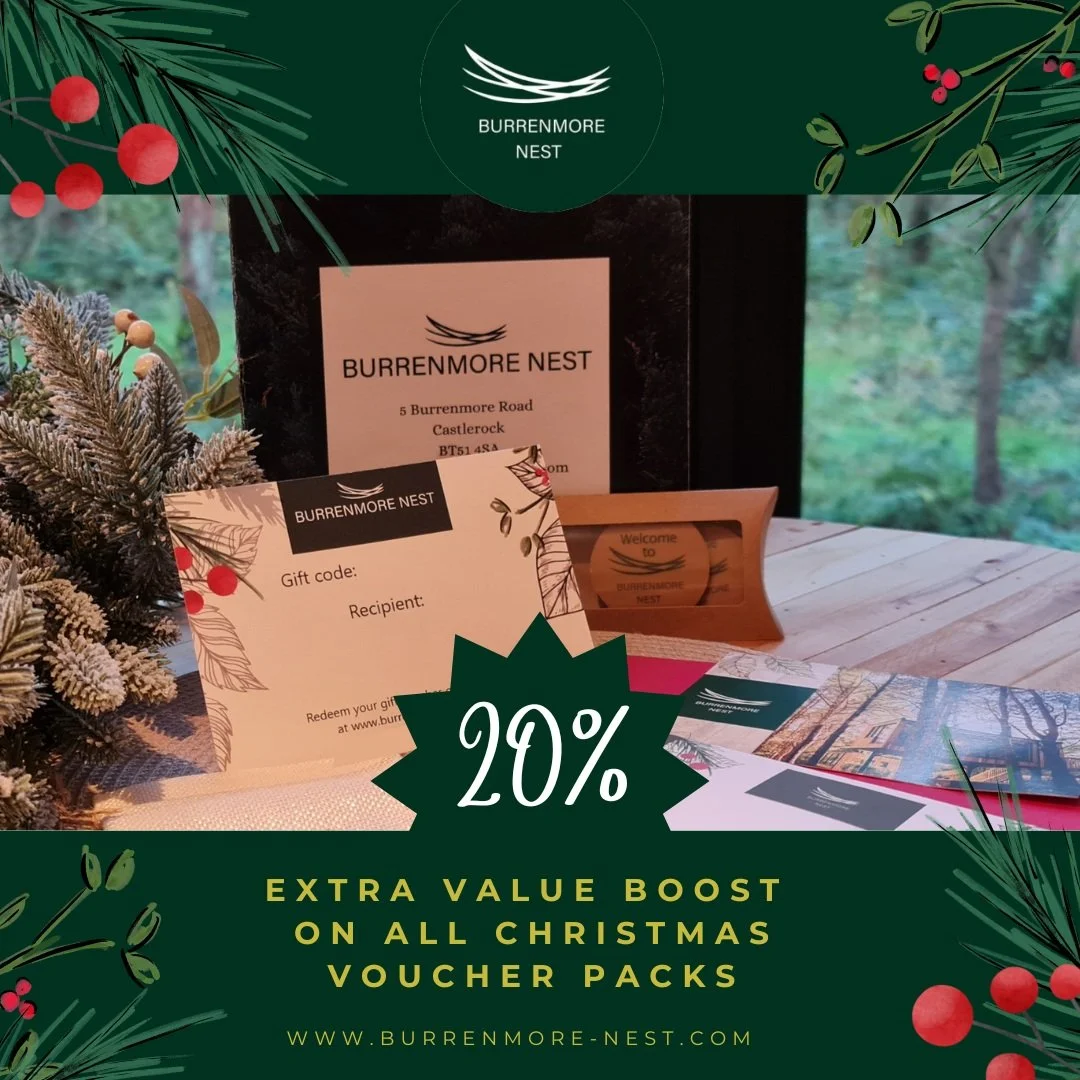 Step out beyond your lodge at Burrenmore Nest to enjoy 82 hectares of forest surrounding the site. Grab a hot drink at Sea Shed Coffee or Al's Coffee Hut. Take a 7 minute walk to visit Lion's Gate entrance to Mussenden Temple and explore the wider 100 acres of National Trust estate, free to public pedestrian access - including the Downhill Demense, the Black Glen and gardens at Bishop's Gate. Walk or drive to Downhill and Benone strand to enjoy miles upon miles of sweeping sandy beach or pop over to Castlerock for food, drink or surf.